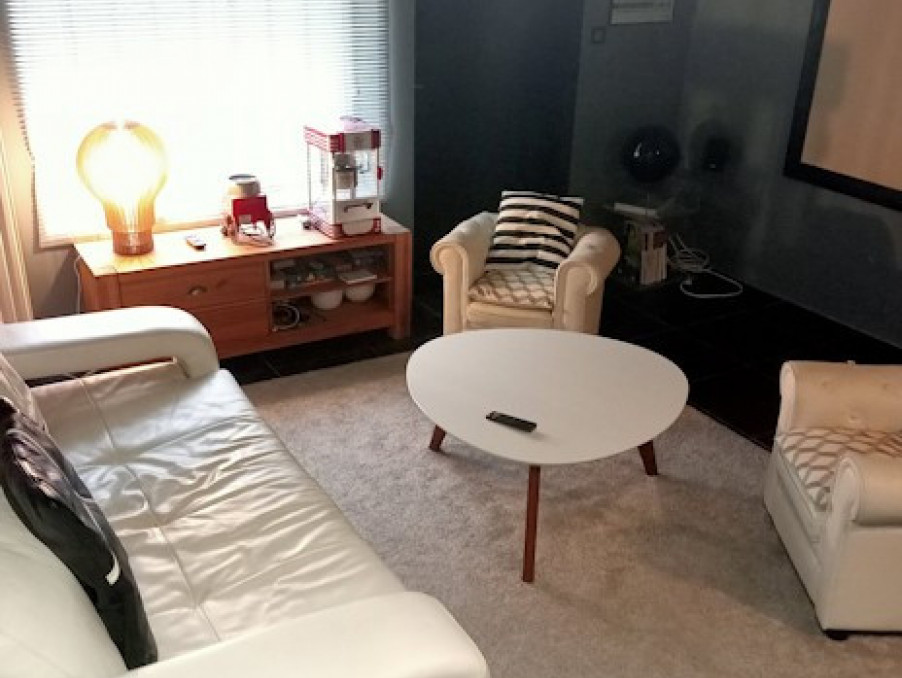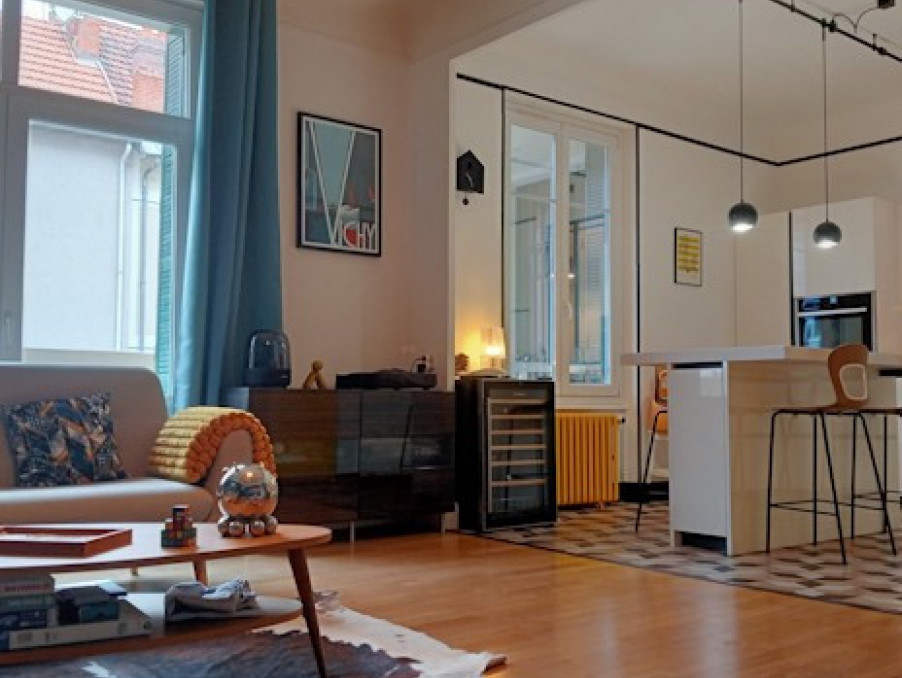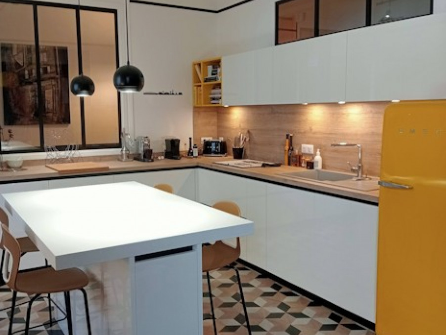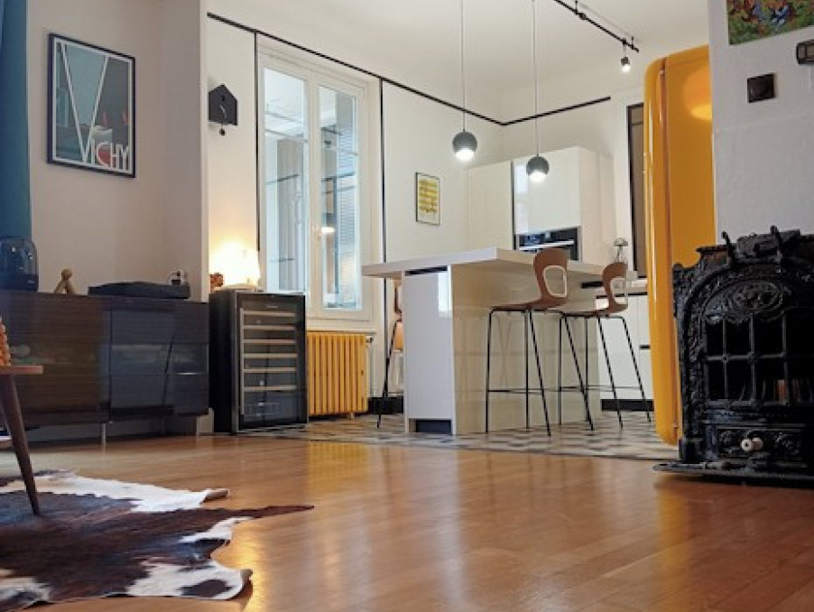 Dans l’appartement, deux niveaux : entrée, une cuisine dînatoire récente, salon, deux chambres et un bureau, ou chambre bébé, salle de bains et wc séparés. Un escalier en colimaçon dessert le rez de jardin avec une pièce home cinéma, une chambre avec salle d’eau et wc, une autre pièce pouvant servir de bureau, cuisine d’été et buanderie.