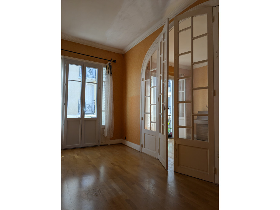 Vichy centre, appartement de 4P de caractère de 97 m² situé proche de la médiathèque et commerces.. Au 3e étage sans ascenseur d'un bel immeuble, cet appartement lumineux propose une entrée, un séjour double ouvrant sur balcons avec portes fenêtres et portes à la française, une cuisine séparée, deux grandes chambres (l'une avec balcon, l'autre offrant une vue dégagée sur l'église Saint-Blaise), une salle de bains et des WC séparés. Surface habitable : 97 m.