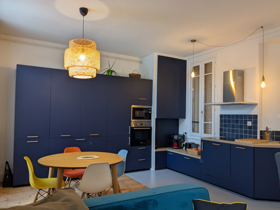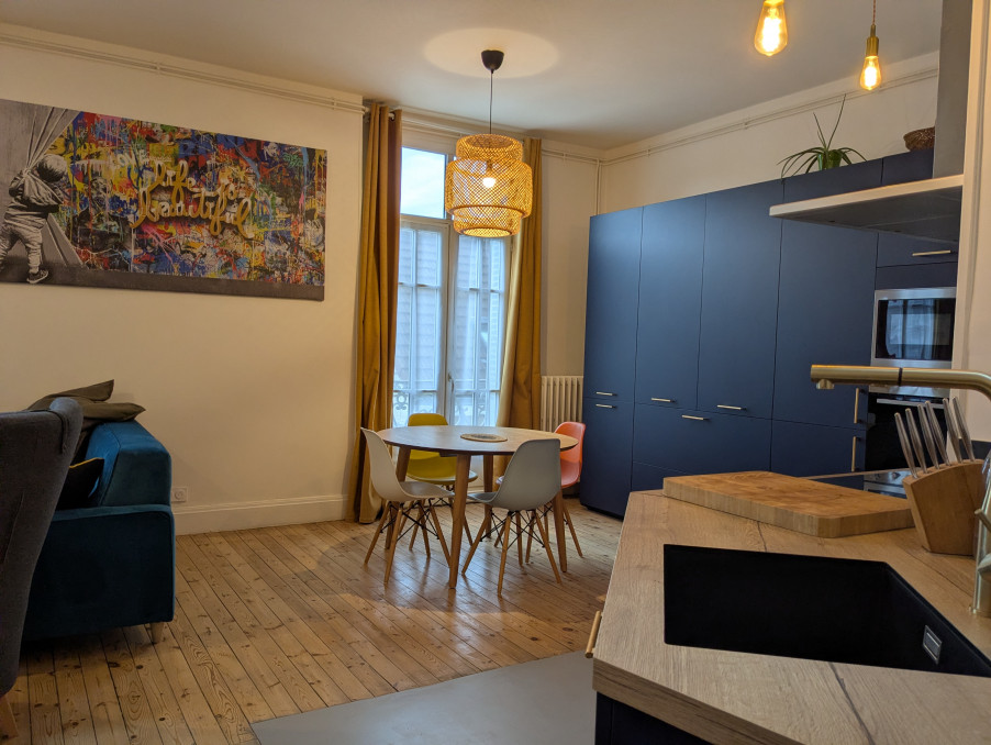 Proche gare, centre ville et universités dans une petite copropriété gérée par un syndic bénévole. Appartement refait à neuf avec goût : entréedans pièce de vie d'environ 27m² donnant sur deux balcons, cuisine ouverte équipée et aménagée réalisée par un cuisiniste. WC, dégagement desservant une chambre avec salle de bains et une chambre avec salle de douche. Aucun travaux à prévoir. Au rdc une pièce de stockage d'environ 7m² et un garage fermé. Une cave compléte le lot.