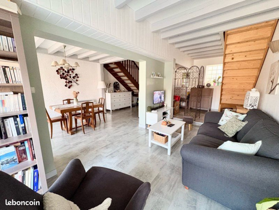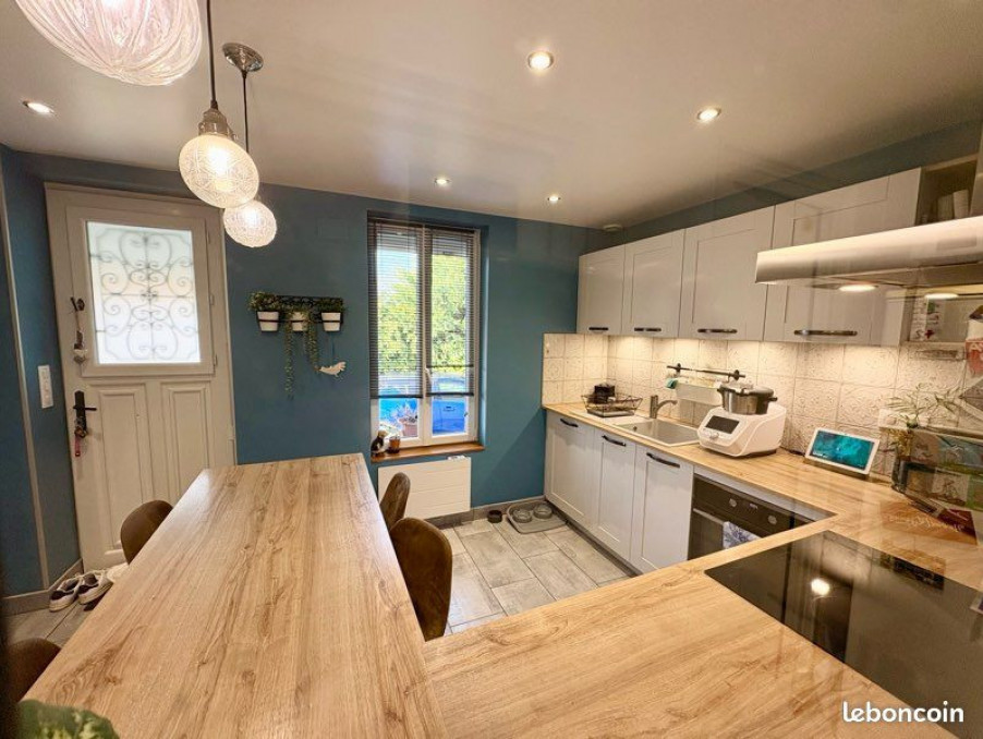 Au calme avec un joli jardin, maison rénovée sur deux niveaux sur une parcelle de 1080m², Mitoyenne sur un côté.Avec deux places de stationnement devant la maison, on rentre dans une jolie cuisine. En rez de chaussée vous trouverez salon salle à manger avec poêle à granulés, une chambre en rez de jardin avec salle de bains attenante et un wc.
